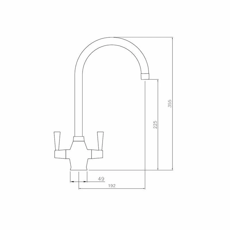 - Tap Dimensions: Overall Height – 355mm; Spout Height – 225mm; Spout Reach – 192mm; Base/Handle Width – 49mm