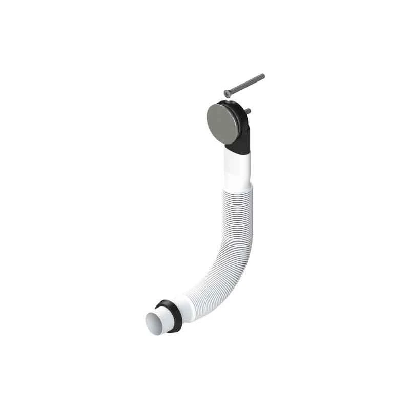 - Flexible pipe connects overflow outlet to basket strainer waste