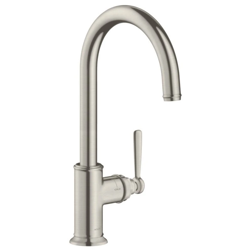 This Stylish AXOR Montreux Single Lever Kitchen Mixer With swivel spout is finished in Stainless Steel. This Axor ComfortZone 260 lever kitchen tap provides space for greater freedom of movement. Consider this hand shower to finish off your kitchen today.