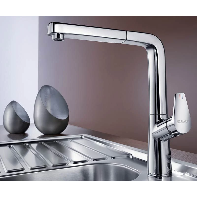 The Blanco AVONA-S Single Lever Pull-Out Handset Galvanic Kitchen Tap features a pull-out handset spray and stylish L-shaped spout. This version from the Blanco AVONA range has all the sophistication and style you would expect, but with the added benefit of offering a pull-out nozzle so the water flow can be directed wherever in the sink the user needs it.