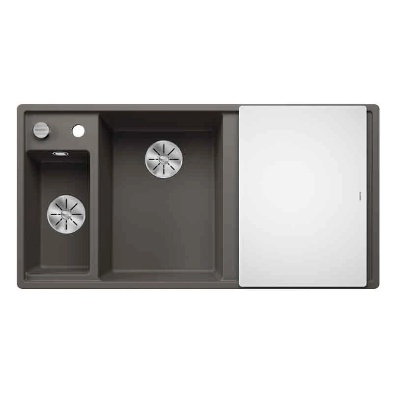 Blanco AXIA III 6 S LH Silgranit 1.5 Bowl Inset Kitchen Sink with Drain Remote Control – Volcano Grey – 527226