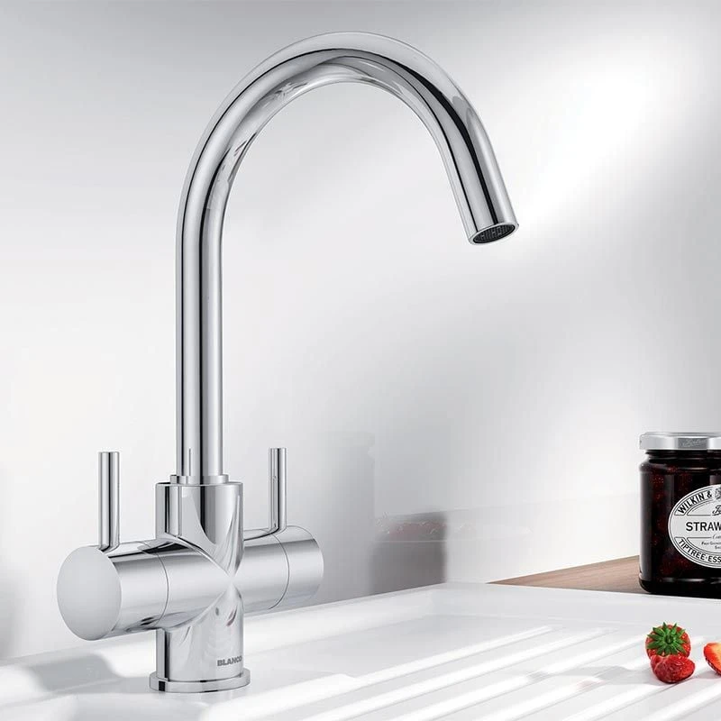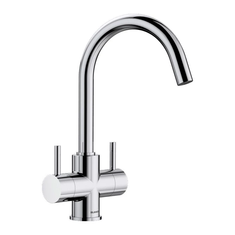 Blanco CAMIA Twin Lever High C-Shaped Spout Galvanic Kitchen Tap (Chrome) 525334 – Details