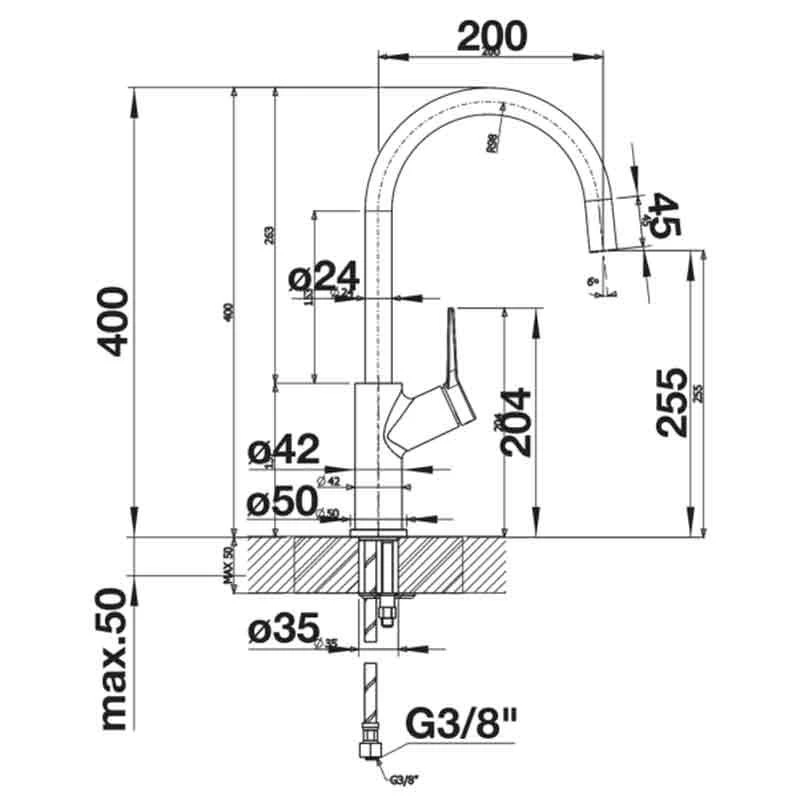 - Stabilisation plate to increase the stability of the tap when fitted in stainless steel sinks