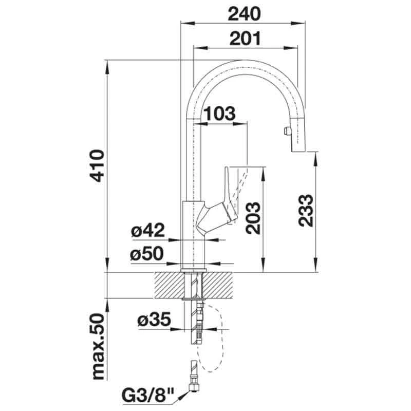 BLANCO CARENA is notable for its lively design. The base comprises a compact mixer tap body with a elegantly sweeping, side-mounted control piece. Above this rises the arched outlet, which due to its height is particularly well suited to filling vases or large pots. The light, unobtrusive design of BLANCO CARENA makes it a harmonious addition to modern kitchen environments.