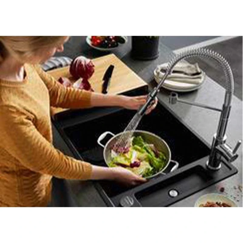 The Blanco CATRIS-S Flexible Stainless Steel Spring Hose Galvanic Kitchen Tap features a flexible stainless steel spring hose, with swivel spout and variable jet option spray. Additionally, this kitchen tap provides you with a smart and professional appearance, and offers the user amazing functionality.