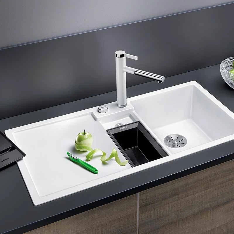 Blanco COLLECTIS 6 S RH Silgranit 1.5 Bowl Inset Kitchen Sink with Drain Remote Control – White – 523348