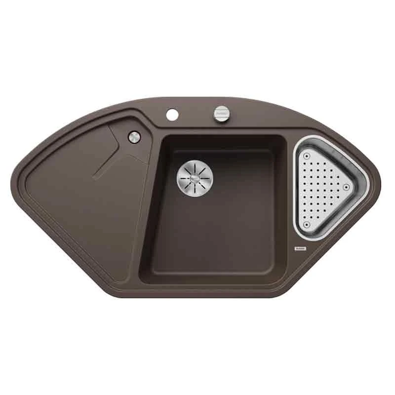 Blanco DELTA II 1.5 Bowl Inset Silgranit Corner Kitchen Sink with Remote Control InFino Drain System – Coffee – 5236690