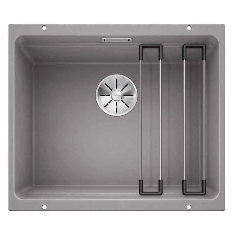 Blanco ETAGON 500-U 1 Bowl Undermount Silgranit Kitchen Sink with Manual InFino Waste – Alumetallic – 522229