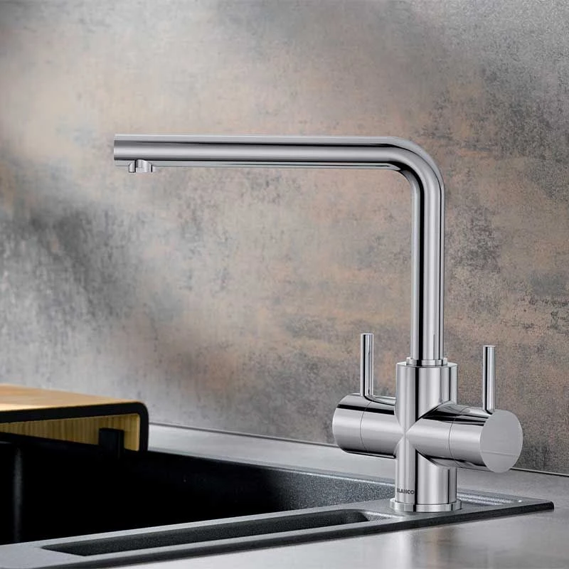 Blanco LAMIA Twin Lever High L-Shaped Spout Galvanic Kitchen Tap (Chrome) 525333 – Details