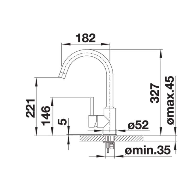 The Blanco MIDA Kitchen Mixer Tap has a single lever making it easy to operate. It is ideal for filling tall pots and vases and has a 6 litre eco flow regulator. This product requires a balanced high pressure supply only and a minimum of 1.0 bar and comes with a 5 year manufacturers gaurantee for your peace of mind.