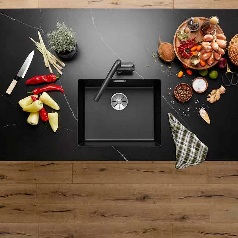 The Blanco SUBLINE 500-U 1-bowl undermount silgranit kitchen sink is a premium kitchen fixture that combines cutting-edge design, durability, and functionality to transform your kitchen into a culinary masterpiece. Designed for undermount installation, this sink seamlessly integrates into your kitchen countertop. This not only enhances the clean and uncluttered appearance of your kitchen but also simplifies cleanup by allowing you to sweep crumbs and spills directly into the sink. Crafted from advanced silgranit composite material, this sink offers remarkable durability and resistance to common kitchen hazards. It’s highly resistant to stains, scratches, heat, and impact, ensuring it can withstand the rigors of daily kitchen use.