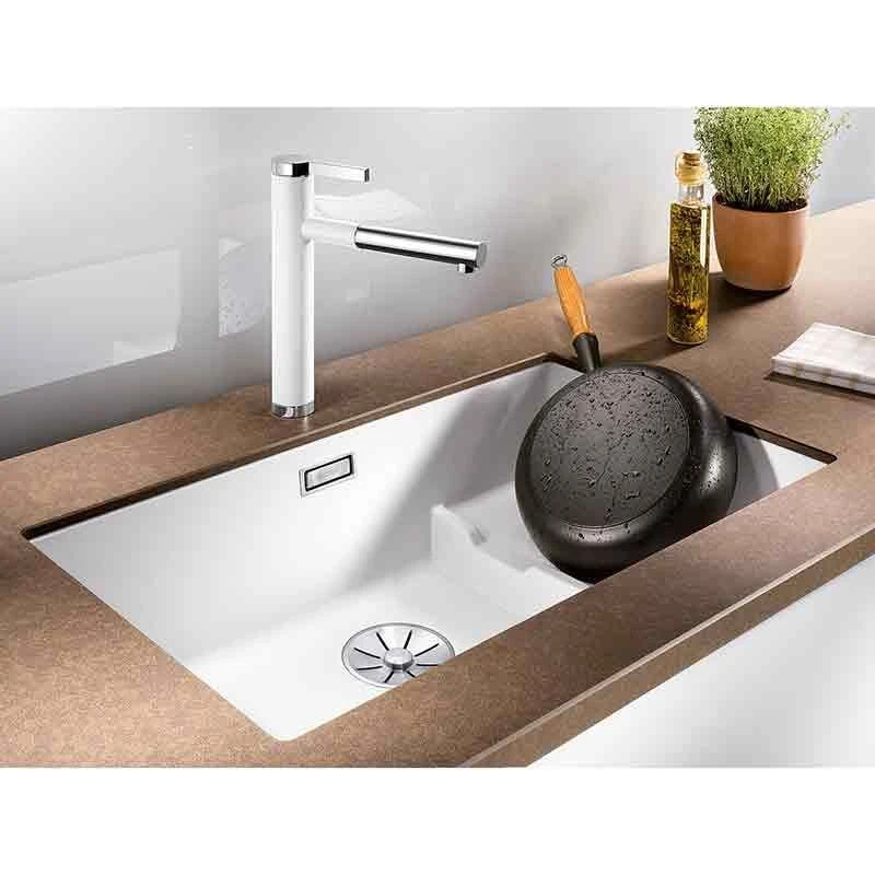 The Blanco SUBLINE 700-U 1-Level Bowl Undermount Silgranit Kitchen Sink is a sophisticated and highly functional addition to any kitchen. Crafted with precision and style, this sink seamlessly combines contemporary design with durability and convenience. Designed for undermount installation, this sink is seamlessly integrated into your kitchen countertop. This not only enhances the clean and uncluttered appearance of your kitchen but also simplifies cleaning by allowing you to sweep debris directly into the sink. Crafted from advanced silgranit composite material, this sink offers remarkable durability and resistance to common kitchen hazards. It’s highly resistant to stains, scratches, heat, and impact, ensuring it can withstand the rigors of daily kitchen use.The non-porous silgranit surface is exceptionally easy to clean and maintain. It repels stains, ensuring a hygienic and spotless kitchen environment with minimal effort.