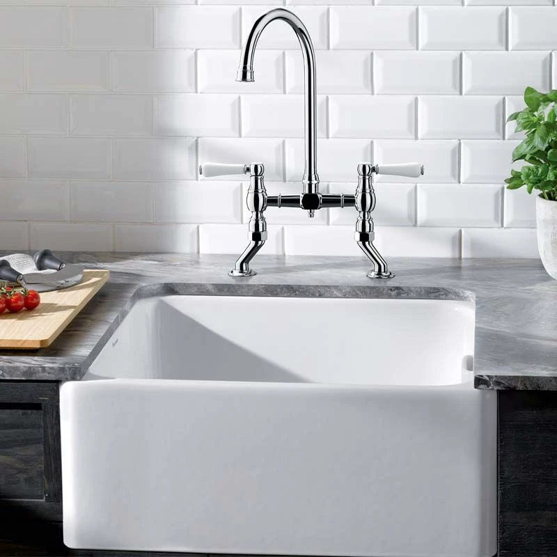 The Blanco VICUS Bridge Twin Lever Swivel Spout Galvanic Kitchen Tap features a classic design with modern functionality, high-quality ceramic seals and cartridge for extremely long-lasting operation. The swivel spout is of a high rise construction which, combined with a long reach, means the tap is perfect for filling the largest of pots and pans.