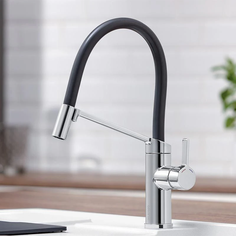 - Compact semi-professional pull-out kitchen tap which gives greater reach to clean around your sink
