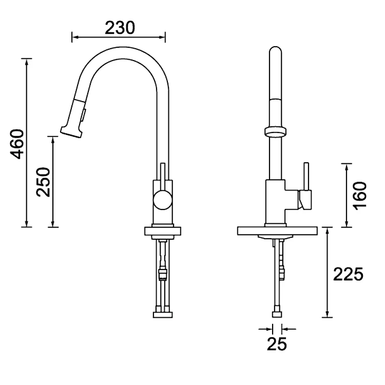 Smartly styled, the Apricot kitchen tap has a push-button operated spray function, making rinsing and washing food or dishes an easy job.