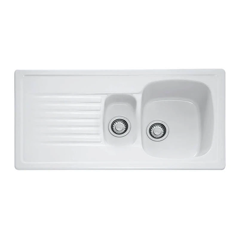 The Franke Elba ELK 651-100 is a 1.5 bowl ceramic kitchen sink which combines beautifully with a variety of work surfaces such as wood, glass and granite. The smooth, impervious surface is resistant to all standard household chemicals, making it perfect for modern, hardworking kitchens.