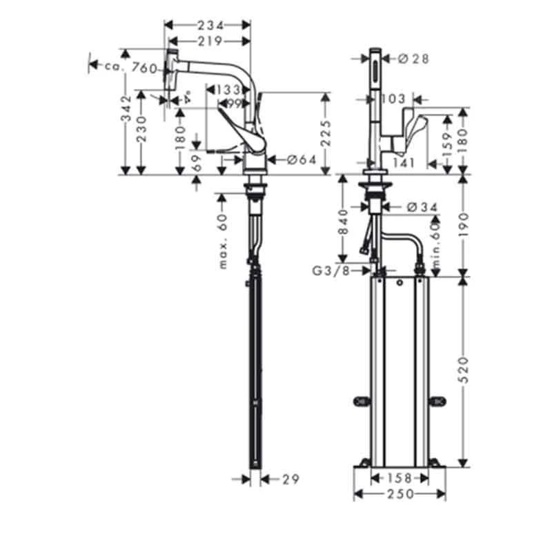 Axor kitchen mixers combine striking beauty with intuitive technology, masterful design with precision engineering. The Axor Citterio Single Lever Kitchen Mixer comes with a pull-out spout with a quick connect hose. Further enhanced by Select technology, it comes with a select button for a comfortable start/stop of the water flow. The matt black chrome finish offers the perfect finishing touch to any luxury kitchen. The kitchen mixer comes with QuickClean technology with which limescale deposits and dirt on the shower disappear in an instant. Simply rub any dirt off the flexible silicone nozzles. Understated yet unmistakably luxurious, with distinctive flat surfaces that brilliantly reflect the light, AXOR Citterio celebrates the preciousness of water itself. With balanced proportions and elegant geometries, the collection suits any kitchen ambience.