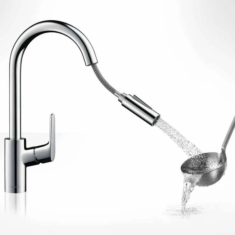 hansgrohe Focus M41 Single Lever Kitchen Mixer 240 with Pull Out Spray – Chrome – 31815000