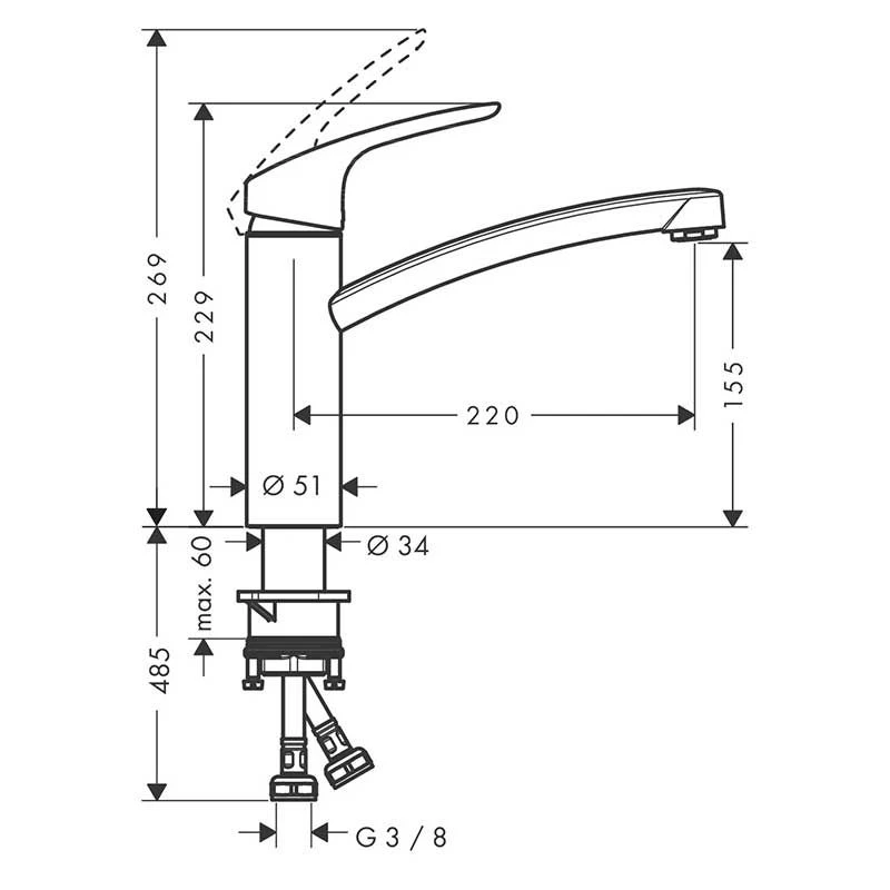 The single-lever design enables smooth control of water flow and temperature. With a simple movement of the lever, you can easily adjust the water to your desired temperature and flow rate, ensuring a convenient and hassle-free kitchen experience.