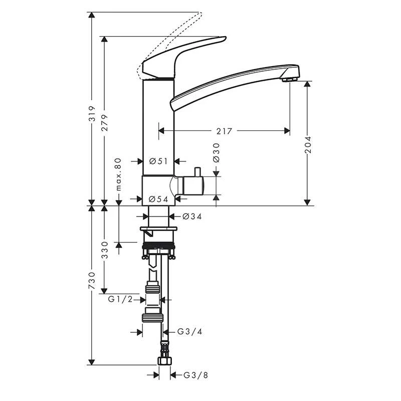 The single-lever design enables effortless management of water flow and temperature. With a simple movement of the lever, you can easily adjust the water to your desired temperature and flow rate, ensuring a convenient and customizable kitchen experience.