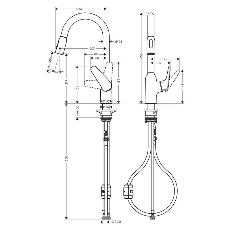 hansgrohe Focus M42 Single Lever Kitchen Mixer Tap 220 With Pull-Out Spray 2 Spray Modes – Stainless Steel – 71800800
