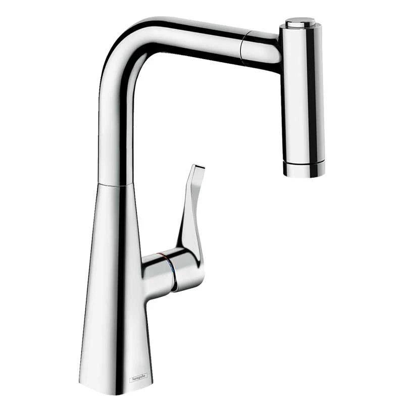 hansgrohe Metris M71 EcoSmart Single Lever Kitchen Mixer Tap 220 With Pull-Out Spray & Sbox 2 Spray Modes – Chrome – 73823000