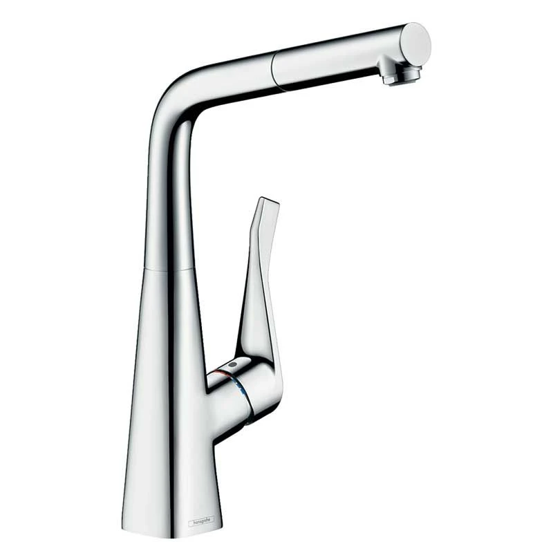 hansgrohe Metris M71 EcoSmart Single Lever Kitchen Mixer Tap 320 With Pull-Out Spout & Sbox Single Spray Mode – Chrome – 73828000