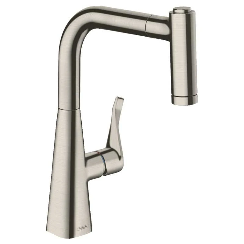 hansgrohe Metris M71 Single Lever Kitchen Mixer Tap 220 With Pull Out Spray 2 Spray Modes – Stainless Steel – 14834800