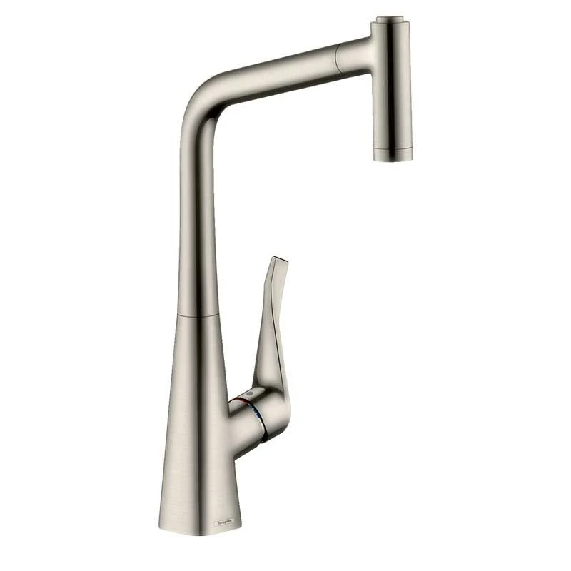 hansgrohe Metris M71 Single Lever Kitchen Mixer Tap 320 With Pull-Out Spray & Sbox 2 Spray Modes – Stainless Steel – 73801800