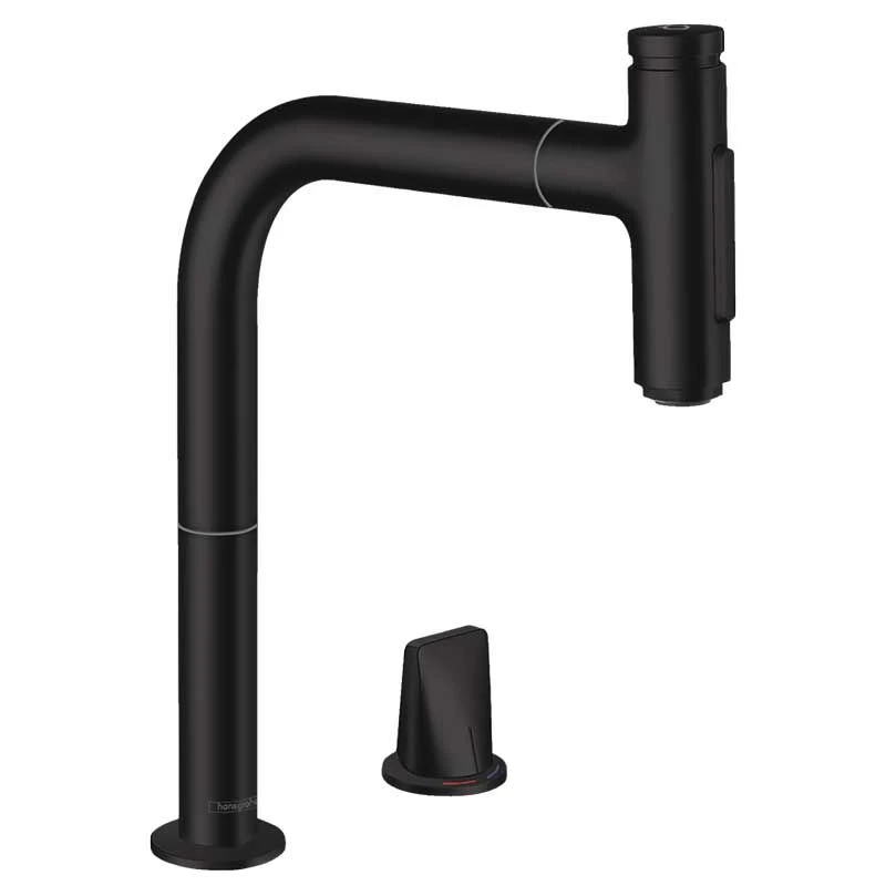 hansgrohe Metris Select M71 2-Hole Single Lever Kitchen Tap Mixer 200 With Pull-Out Spray & Sbox 2 Spray Modes – Matt Black – 73818670