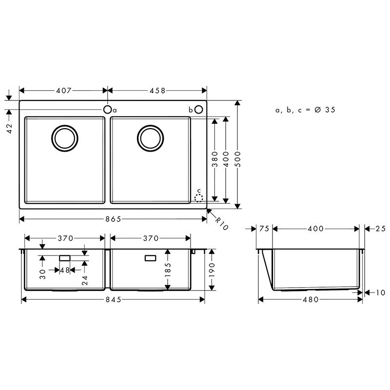 hansgrohe S712-F765 Built-in Sink 370/370 – Stainless Steel – 43311800 Details
