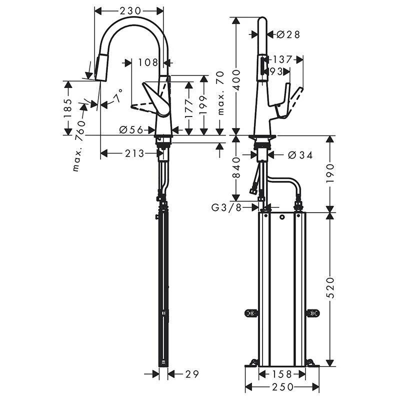 hansgrohe Talis M51 Single Lever Kitchen Mixer 200, Pull-Out Spray, 2jet, sBox – Chrome – 73851000 Details