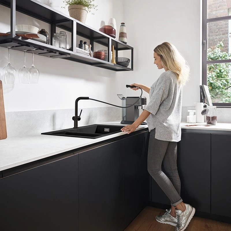 hansgrohe Talis M54 Single Lever Kitchen Mixer 270, Pull-Out Spout, 1jet, sBox – Matt Black – 72809670 Details