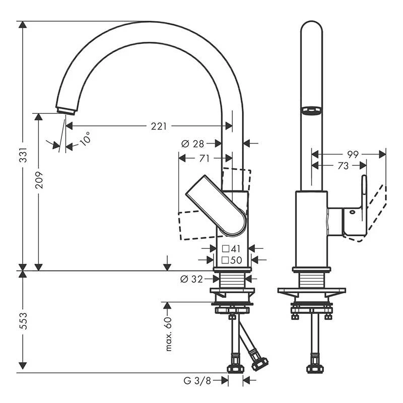 hansgrohe Vernis Shape M35 Single Lever Kitchen Mixer Tap 210 With Swivel Spout – Chrome – 71871000