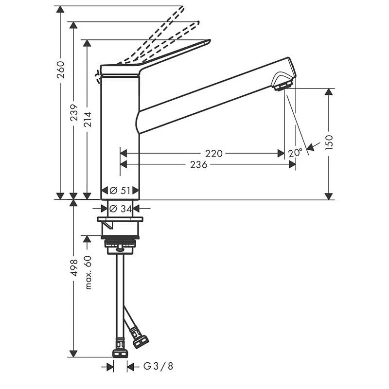 The single-lever design enables smooth management of water flow and temperature. With a simple movement of the lever, you can easily adjust the water to your desired temperature and flow rate, ensuring a convenient and hassle-free kitchen experience.