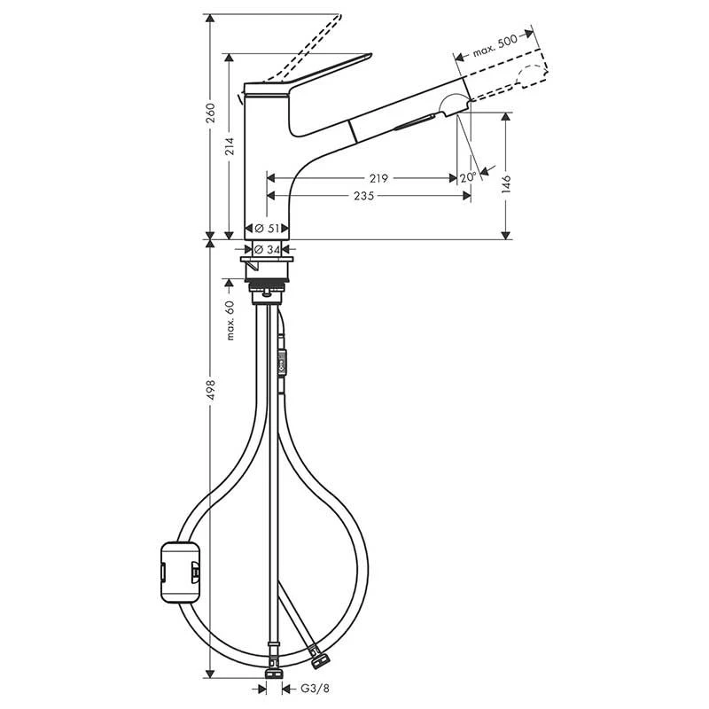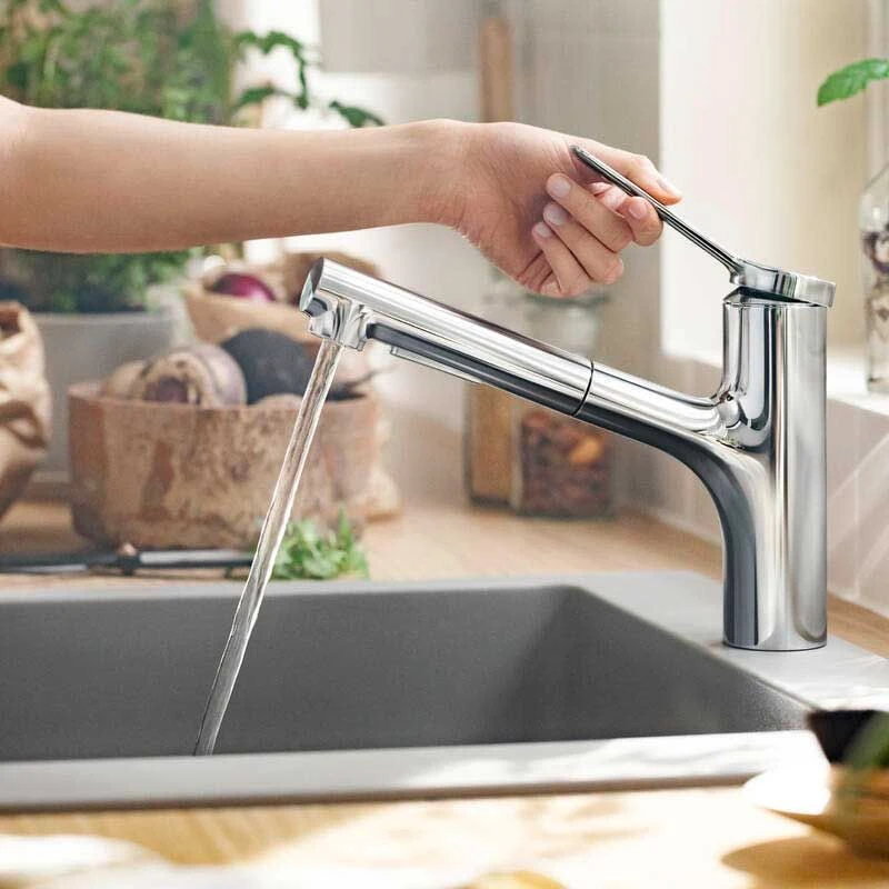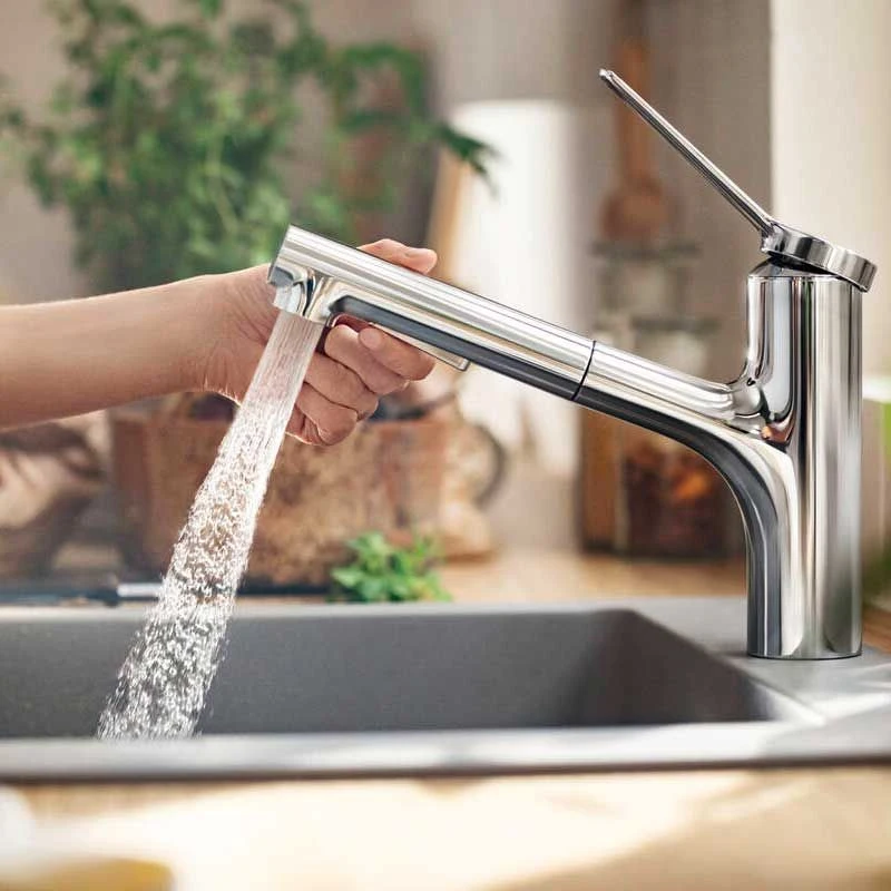 hansgrohe Zesis M33 EcoSmart Single Lever Kitchen Mixer Tap 150 With Pull-Out Spray 2Jet – Chrome – 74810000