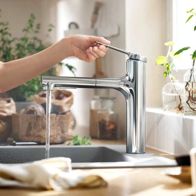 hansgrohe Zesis M33 Single Lever Kitchen Mixer Tap 160 With Pull-Out Spray 2Jet – Chrome – 74801000