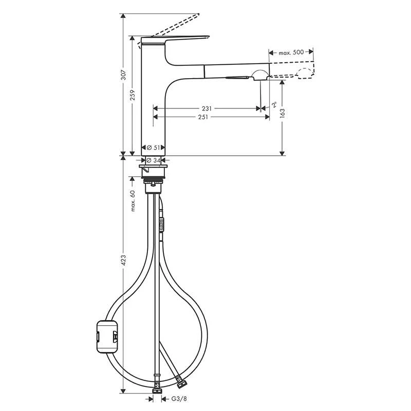 hansgrohe Zesis M33 Single Lever Kitchen Mixer Tap 160 With Pull-Out Spray 2Jet – Stainless Steel – 74801800