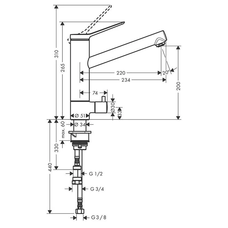 The single-lever design enables smooth management of water flow and temperature. With a simple movement of the lever, you can easily adjust the water to your desired temperature and flow rate, ensuring a convenient and hassle-free kitchen experience.