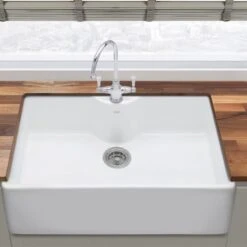 Thomas Denby Sonnet 1 Bowl Reversible Ceramic Single Bowl Kitchen Sink & Drainer – White – SO1BWT