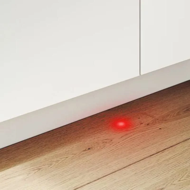 The dishwasher projects light onto the floor while it is running so you wont accidentally open the dishwasher halfway through the cycle.