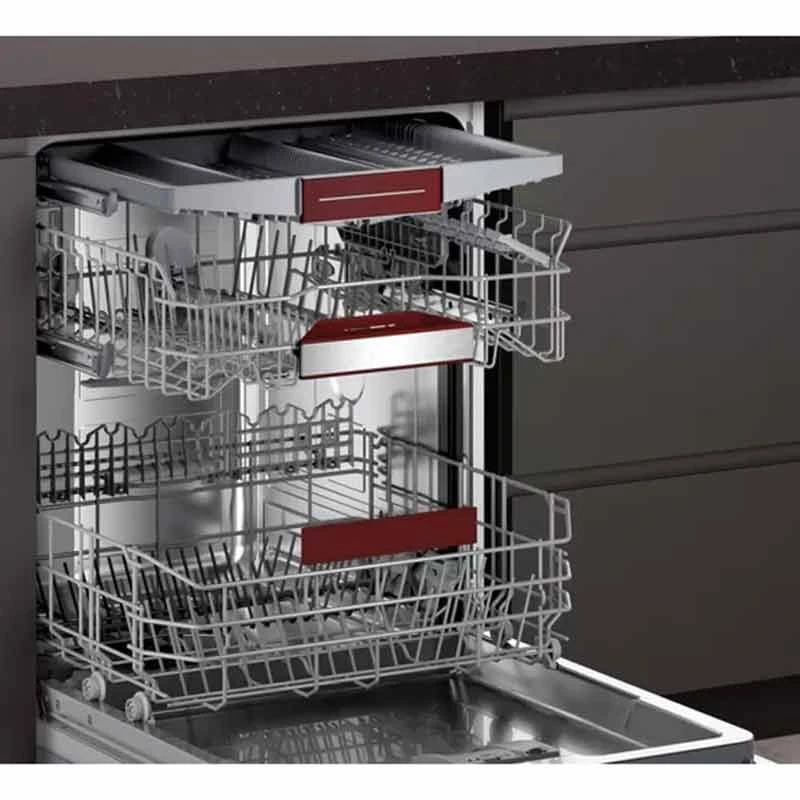 Finish your kitchen with the Neff N30 S153HCX02G dishwasher. This standard dishwasher is designed for fully integrated and built in installation under the kitchen counter. It has a sleek black exterior, stainless steel interior, perfect to be installed in any kitchen style.