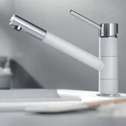 Blanco KANO Single Lever Silgranit-Look Dual Finish Kitchen Tap – White/Chrome – 525030