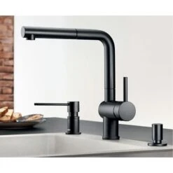 Blanco LINUS-S Single Lever Pull-Out Handset Special Colour Kitchen Tap – Matt Black – 525807
