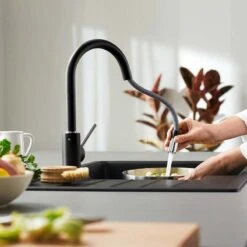 Blanco MIDA-S Single Lever Pull-Out Spray Silgranit-Look Kitchen Tap – Black – 526146