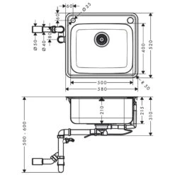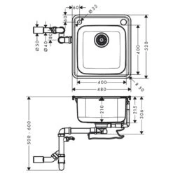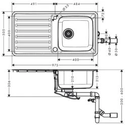Hansgrohe S4113-F400 Built-in Kitchen Sink 400/400 With Drainboard – Stainless Steel – 43338800