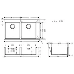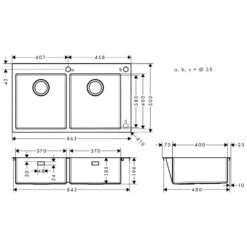 Hansgrohe S717-F450 Built-in Kitchen Sink 450 With Drainboard Left – Stainless Steel – 43307800