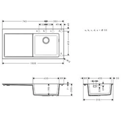Hansgrohe S5110-F450 Built-in Kitchen Sink 450 With Drainboard Right – Graphite Black – 43330170