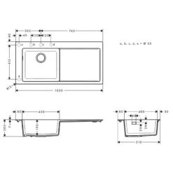 Hansgrohe S510-U760 Undermount Kitchen Sink 305/435 – Stone Grey – 43436290