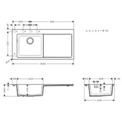 Hansgrohe S715-F450 Built-in Kitchen Sink 450 With Drainboard Left – Stainless Steel – 43306800